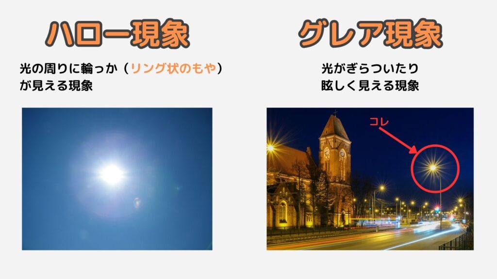 歪み以外にも光に対して敏感になりました。ハロー・グレア現象にも悩まされています。