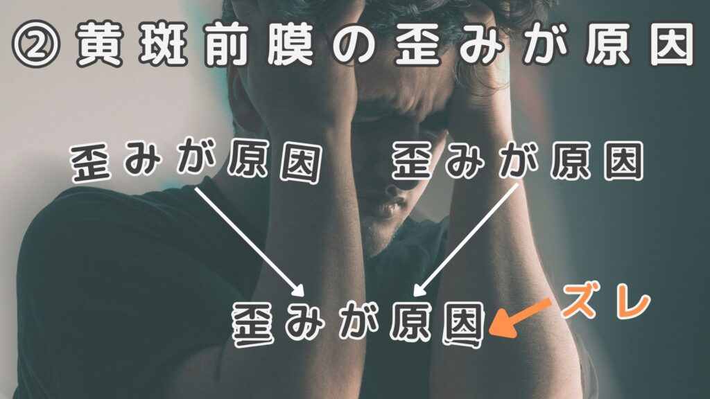考えられる原因をこの3つに絞りましたが、私は、2番目の黄斑前膜の歪みが原因なのではと思っています。