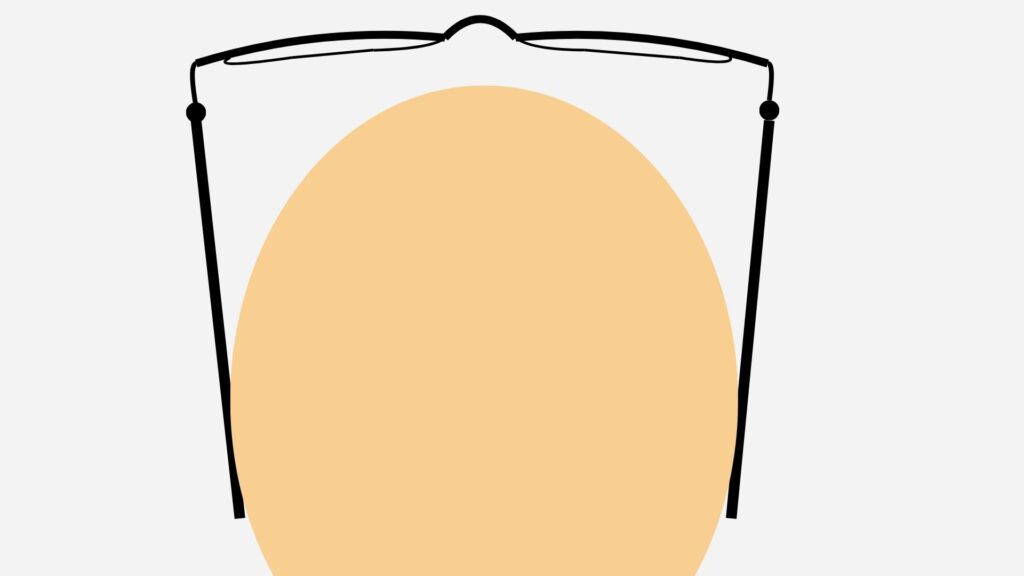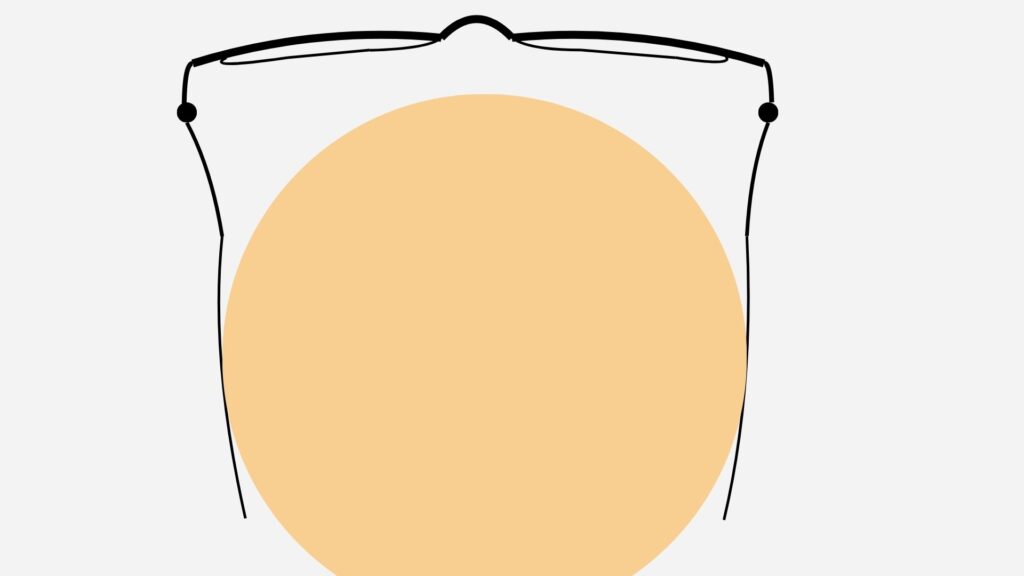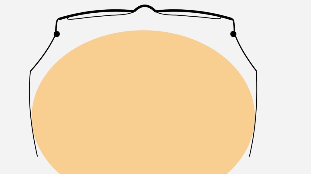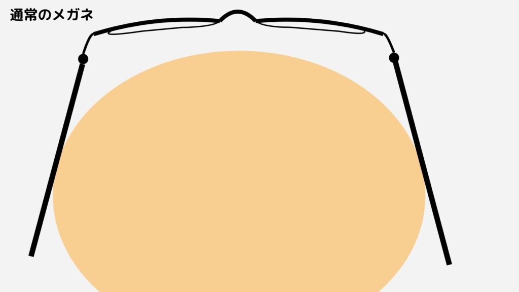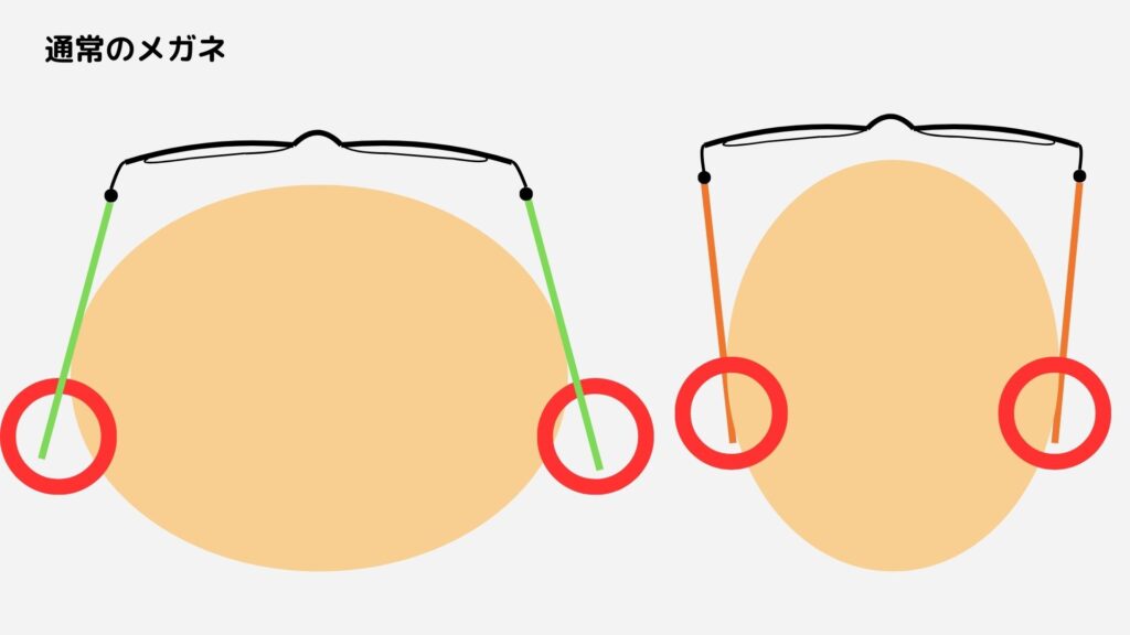 頭が大きい方の場合、通常のメガネのテンプル幅を広げると下の図のようになります。