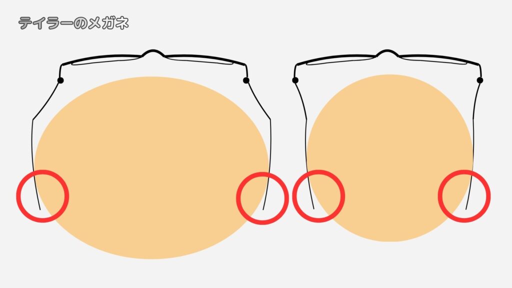 テンプルエンドと頭との距離がテイラーの方が一定ですよね。