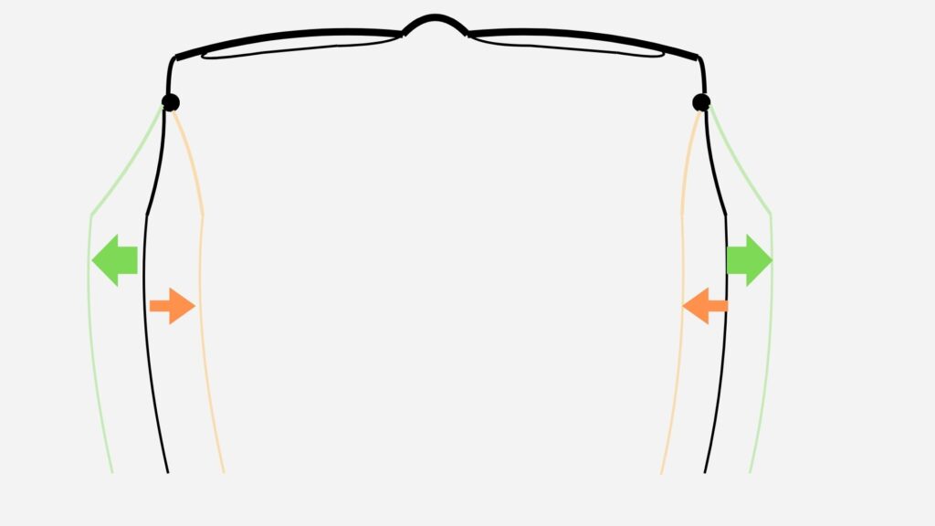 逆に頭が小さい方は、テンプル幅を狭くしますので下の図のようになります。